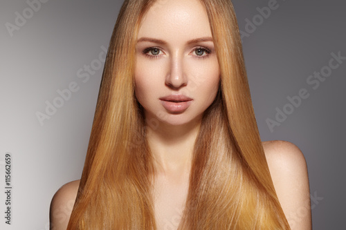 Portrait Of Good Looking Ginger Female With Long Straight Shiny