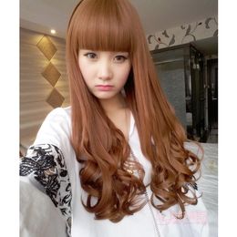 New Girls Long Curly Hair Wig Bangs Long Straight Wig Ladies Long